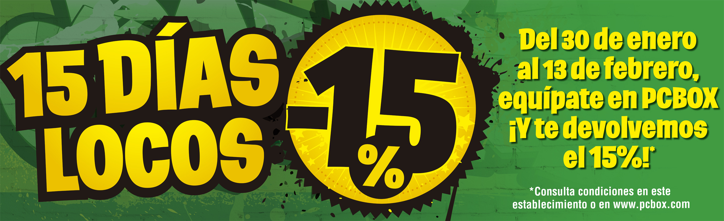 ¡Llegan los 15 días locos a PCBOX! Del 30 de enero al 13 de febrero, equípate en PCBOX ¡y te devolvemos el 15% del importe!
