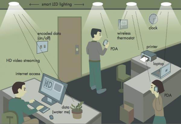 En boca de Haas, “Todo lo que se necesita es incluir un microchip a cada dispositivo de iluminación y combinar dos funciones básicas, iluminación y transmisión inalámbrica de datos”.